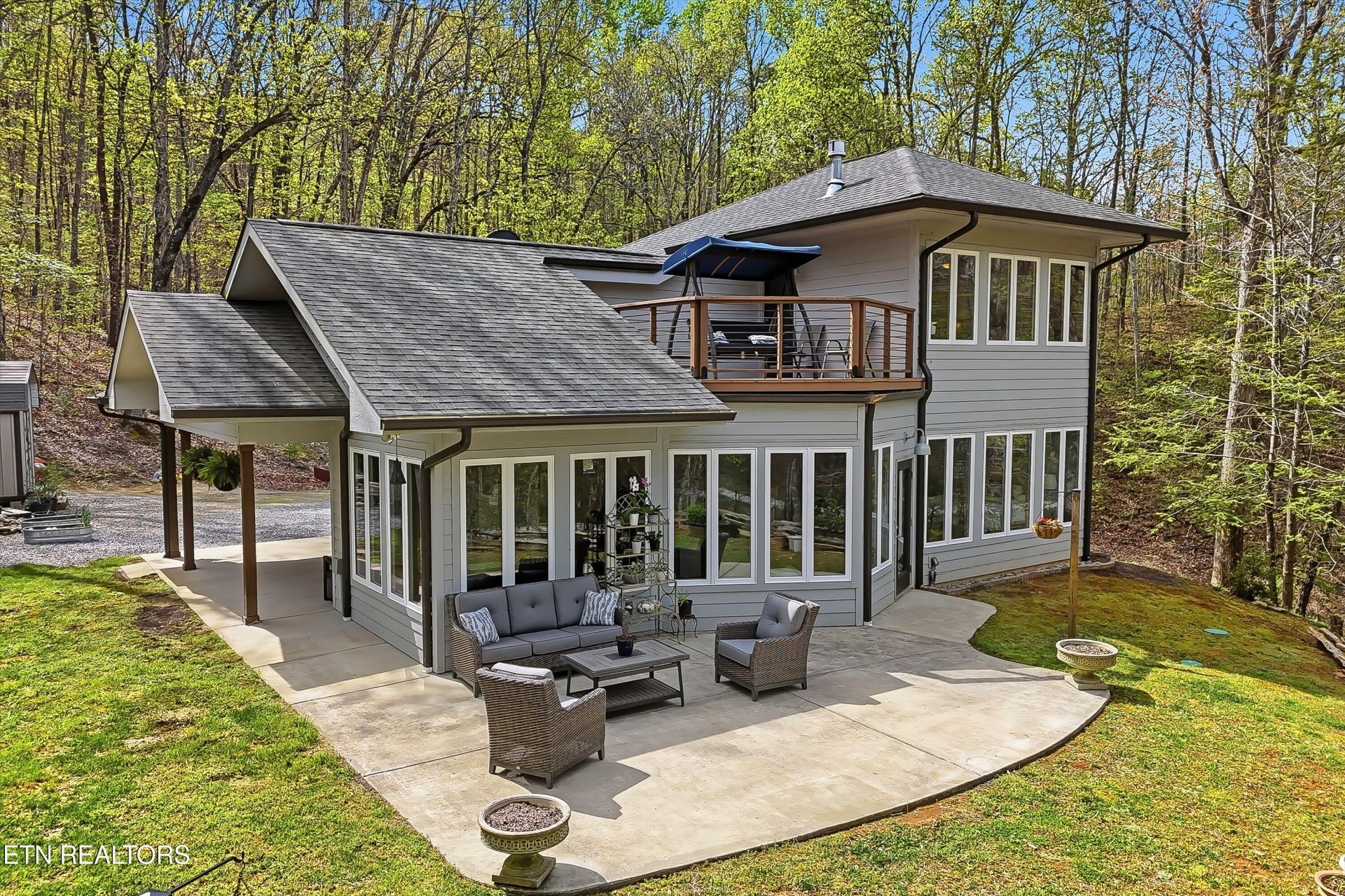 Some homes have a story. This one has a legend.Known affectionately as The Boat House, 233 Gap Cove Road is a one-of-a-kind custom home built in 2018 and designed to mirror the bow of a ship -- angled, intentional, and commanding -- as it gazes out over the neighborhood pond. It is the kind of property that stops people mid-sentence when they first lay eyes on it, and it only gets better the closer you get.Inside, rich hardwood floors run throughout the upstairs, luxury vinyl plank flooring on the main level covers sealed concrete beneath -- a design detail that speaks to the thoughtful, custom nature of the build. A gas fireplace anchors the living space with warmth and ambiance, making the home as cozy in the heart of winter as it is breezy and inviting come spring.The open-concept kitchen flows naturally into the living and dining areas, creating a connected, social layout that is as functional as it is inviting. Stainless appliances and a dedicated pantry give the kitchen real working utility, while a conveniently placed half bath and laundry room just off the kitchen keep daily routines running smoothly. The two-bedroom, two-and-a-half bath layout is intimate without feeling small -- every inch purposefully designed, meticulously maintained, and move-in ready. The primary en-suite is a particular standout, featuring a custom shower with two independent shower heads and separate handles -- a small luxury that makes a quiet but lasting impression.Step outside and the property opens into something truly rare for the East Tennessee market. Over five acres of private, wooded land wrap around the home, offering a level of seclusion that feels miles removed from the everyday -- even while tucked within a gated community. Just beside the dining area and carport sits Charlotte's Spring, a man-made water feature that adds a quiet, almost storybook quality to the daily rhythm of life here.The land itself is productive as well as beautiful. Multiple fruit trees and bushes dot the property, including goumi berries and paw paw trees -- a nod to the kind of intentional, land-connected living that is increasingly hard to find. A large storage shed keeps everything tidy and organized, a fitting touch for a property maintained with obvious pride.And then there is the wildlife. Turkeys wander through. Deer pass at dusk. The occasional bear reminds you that this is real Appalachian country -- wild, alive, and utterly unlike anything else on the market. The gated neighborhood provides security and community, but make no mistake: nature runs the show here, and that is precisely the point.The Boat House is not a home you find every day. It is a home you remember for the rest of your life.