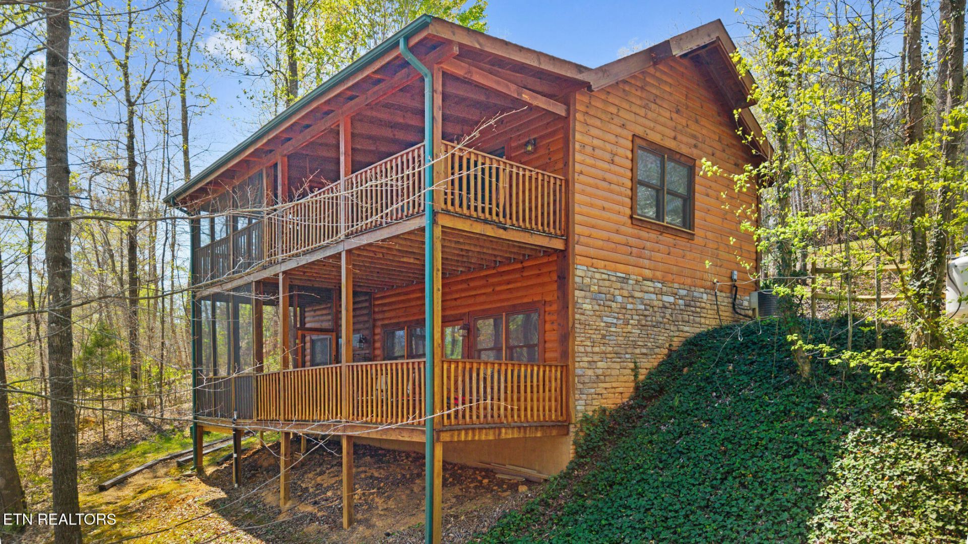 WOW FACTOR! TURN-KEY RUSTIC CABIN WITH MOUNTAIN VIEWS IN THE HEART OF WEARS VALLEY ON A WOODED AND PRIVATE NEARLY ONE ACRE LOT WITH STRONG SHORT-TERM RENTAL POTENTIAL AND NO HOA FEES! FULLY FURNISHED AND GENERATING INCOME!Welcome to this charming 2-bedroom, 2-bath cabin, each bedroom featuring its own en suite for ultimate guest comfort and privacy. Ideally located directly across from Honeysuckle Meadows amenities, including a pool and fishing pond, this property offers a rare combination of convenience and serene mountain living.The main level features an open-concept living area along with a full bedroom and bath, perfect for easy one-level living. The lower level provides a second living area with endless possibilities--create a game room, theater space, or additional entertainment area to maximize rental appeal--along with another bedroom and full bath.Enjoy the outdoors from two levels of decking, both featuring screened-in sections so you can relax with your morning coffee or unwind in the evenings without the nuisance of insects. Situated on nearly an acre, the property offers privacy and a peaceful setting while still being close to area attractions.Whether you're looking for a personal retreat, a vacation rental investment, or both, this property checks all the boxes with location, layout, and income potential.*Check out the 360 tour and video!