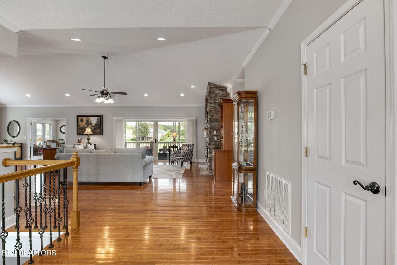 Welcome to 424 Wewoka Circle -- a stunning golf-front home perfectly positioned on the 13th fairway of the highly sought-after Tanasi Golf Course in Tellico Village.From the moment you step inside, you're greeted by beautiful hardwood floors and a warm, inviting great room featuring a stacked stone gas fireplace with custom built-ins on either side. Designed with both comfort and entertaining in mind, the open floor plan allows for effortless flow while showcasing picturesque golf course views from multiple vantage points throughout the home.The great room seamlessly connects to the outdoors through impressive bi-parting sliding glass doors, leading to a spacious covered deck--ideal for relaxing or hosting gatherings while enjoying serene fairway views. The kitchen is equally inviting, offering granite countertops, a convenient breakfast bar, and ample space for friends and family to gather. Just beyond, you'll find a cozy breakfast nook and a light-filled sunroom, which also provides direct access to the covered deck, creating the perfect extension of your living space.The main-level primary suite is a private retreat, complete with a tray ceiling and its own access to the covered deck. The ensuite bath features a dual vanity, walk-in shower, and a large soaking tub--perfect for unwinding after a day on the course. A powder room is conveniently located just off the great room, and the laundry room--situated near the garage--offers additional cabinet storage for everyday convenience.The lower level is an entertainer's dream, especially for game days. This expansive space includes a large family room with a kitchenette, two guest bedrooms, a full bath, and two dedicated office spaces. One of the offices could easily be converted back into storage for a golf cart or used as a home gym. Step outside to enjoy the lower-level patio, providing yet another space to take in the beautiful surroundings.With its exceptional layout, multiple indoor and outdoor living areas, and prime golf course location, professional landscaping, this home offers the perfect opportunity to embrace the Tellico Village lifestyle. Come see for yourself and start planning your next chapter in this incredible community.