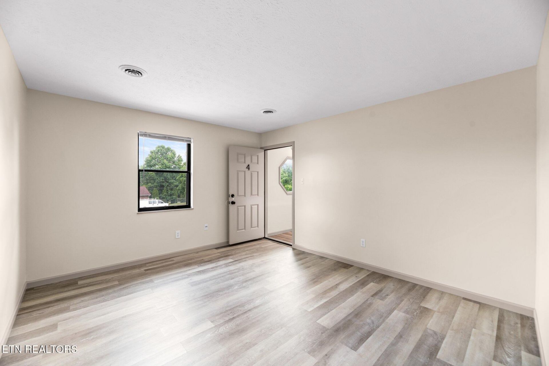 This renovated GROUND LEVEL, NO STAIRS apartment is conveniently located just minutes from restaurants, shopping, and interstate systems. The flowing floor plan houses two large bedrooms, one full bathroom, a large kitchen, and laundry hook ups in the unit. The kitchen has quartz countertops, stainless steel appliances, a large pantry for storage and ample room for a family sized dining room table. Both bedrooms are generous in size with large double door closets and ample space for storage. This apartment has energy efficient features such as LED lights throughout (no bulbs to replace!) as well a single/double flush toilet to assist with efficiency of utilities! This property was fully renovated in 2022 with the following upgrades: New windows, HVAC unit, appliances, vinyl plank flooring throughout, doors and trim, vanity, hardware, light and plumbing fixtures, floor to ceiling paint, etc. Tenants pay all utilities and are on separate meters. Trash pick up, pest control and basic lawncare are included. The photos represent an identical apartment in the building, however they are not a true depiction of the available apartment.